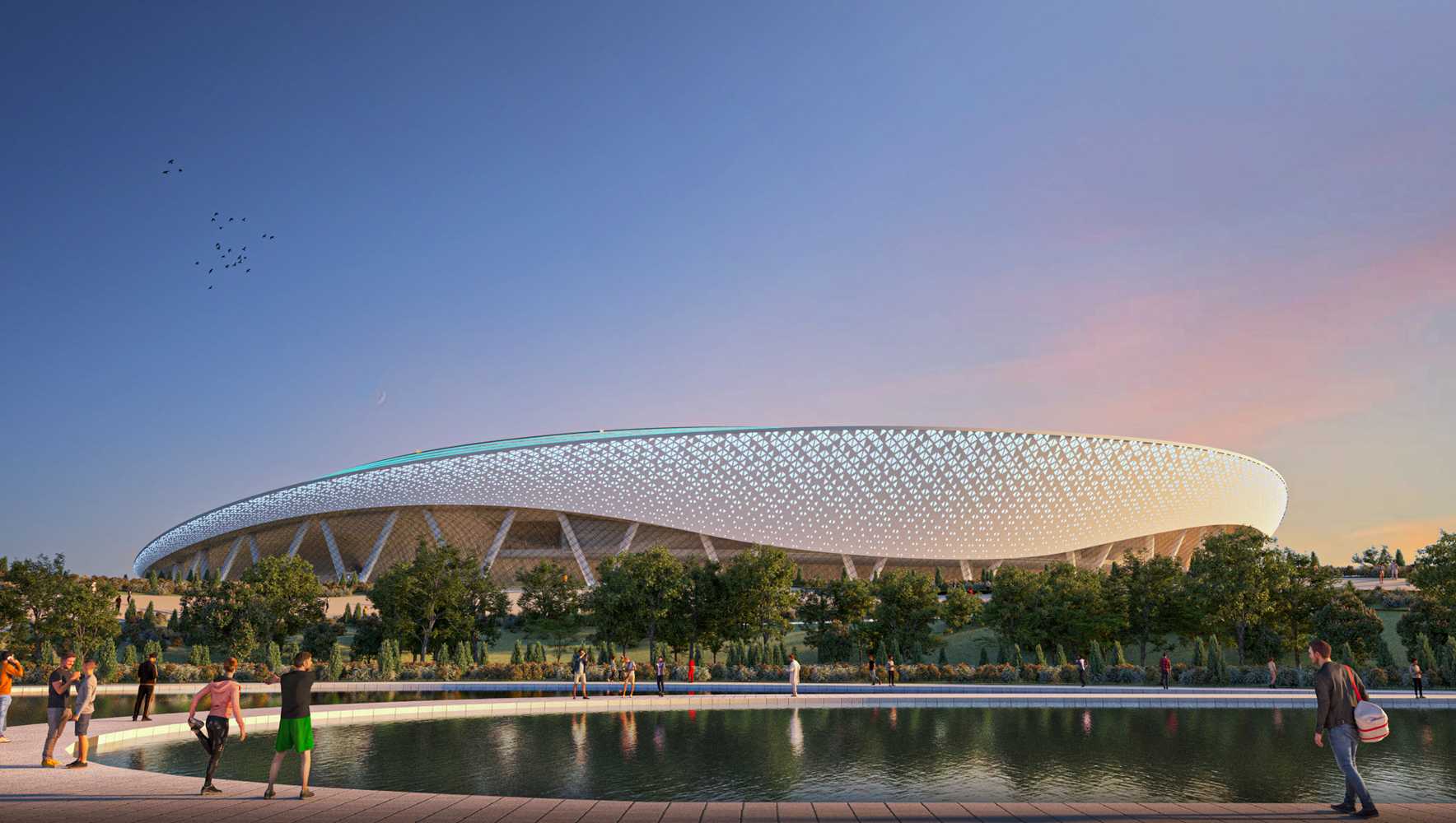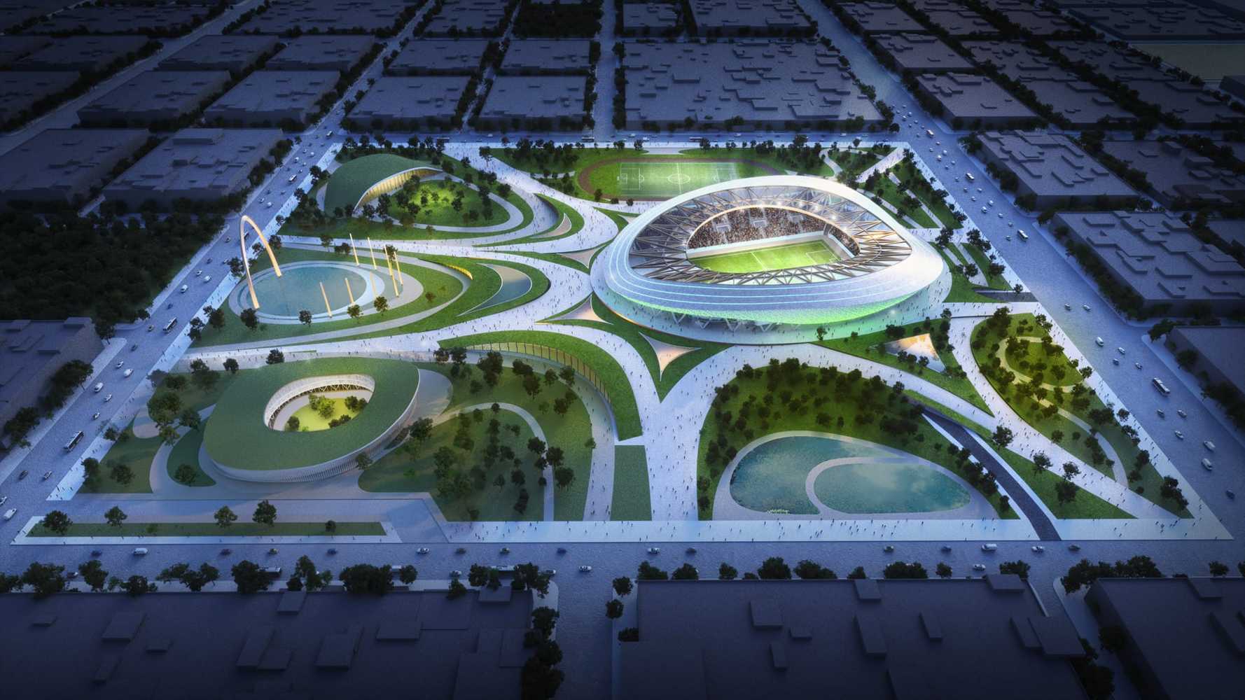 Koncepcję nowego stadionu przygotowała pracownia Archia z Londynu. Pierwszy projekt powstał w 2022 i zakładał budowę całego kompleksu sportowo-rekreacyjnego. Początkowe plany w toku dalszych prac nieco okrojono (m.in. z hotelu czy hali sportowej), pozostawiając stadion jako jedyny duży obiekt całego założenia, a finalna koncepcja była gotowa w 2024.