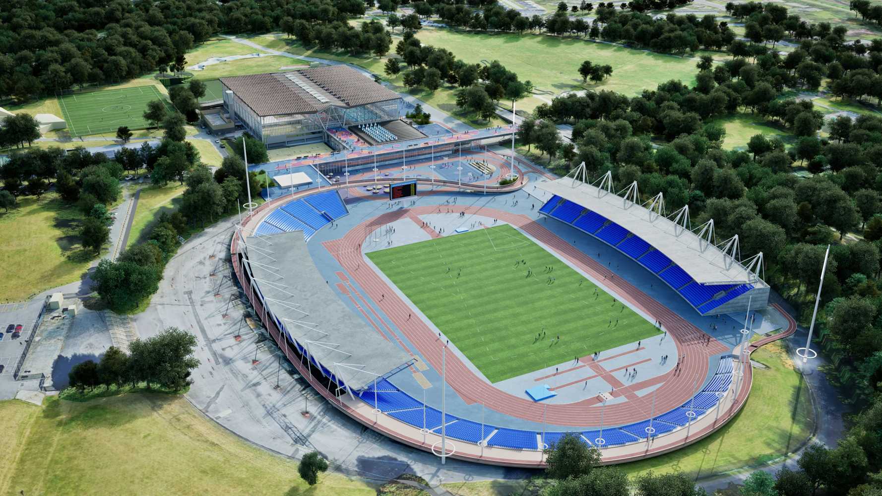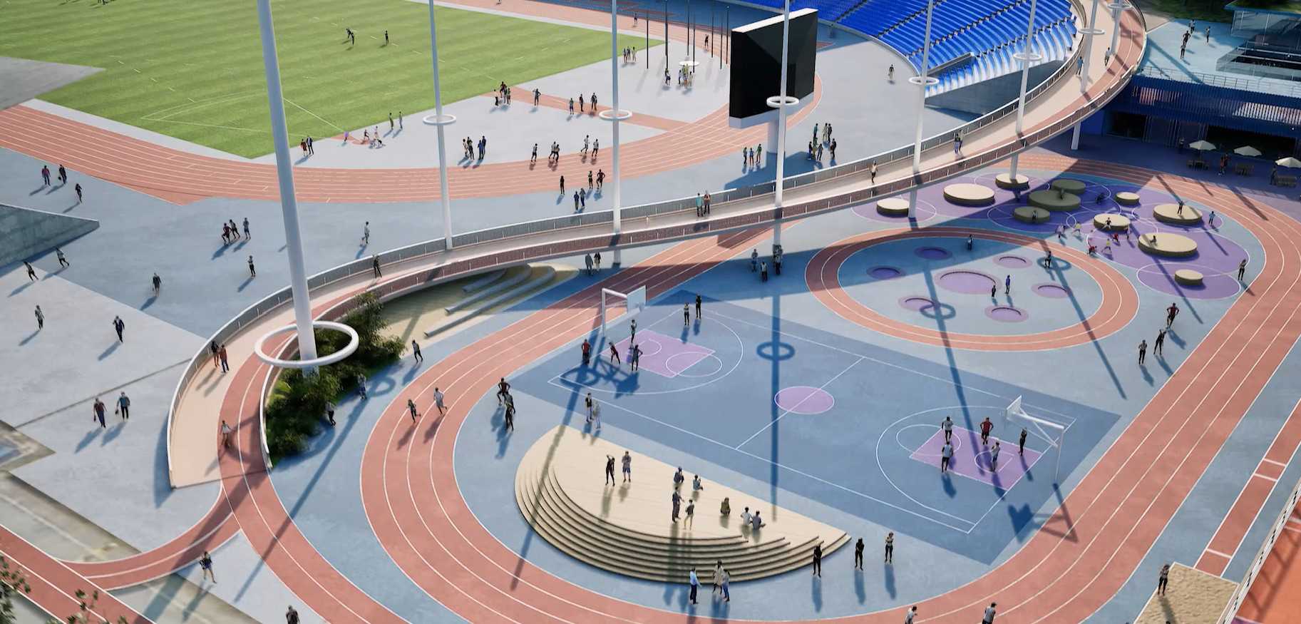 Za północnym łukiem powstanie tzw. Sports Plaza z 200-metrową bieżnią treningową, boiskiem do koszykówki 3×3 i plenerową siłownią. Na stadionie planowane są również nowe maszty oświetleniowe, toalety i udogodnienia dla osób niepełnosprawnych.