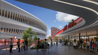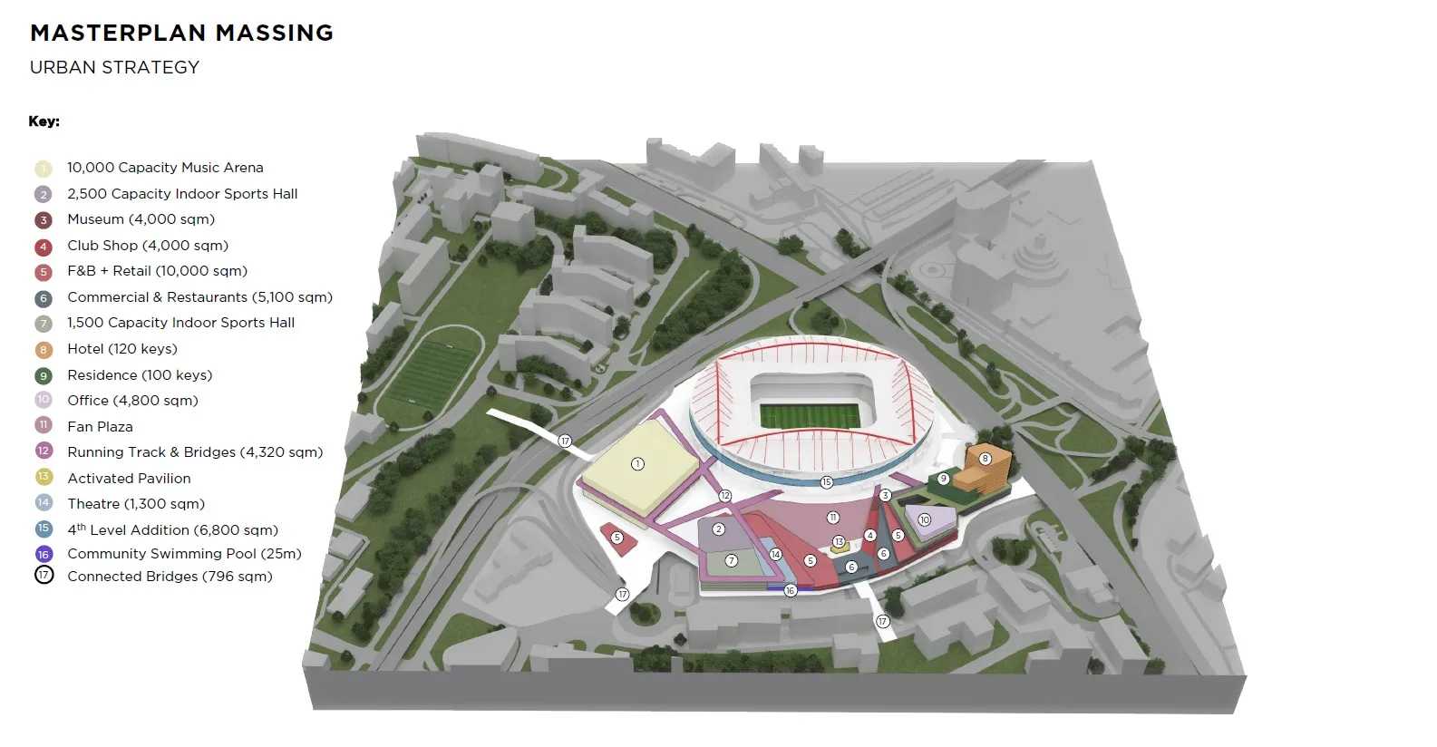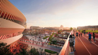 - odtworzonego boiska akademii, które ma powstać na dachu dwóch mniejszych hal sportowych i być otoczone ścieżkami przypominającymi bieżnię lekkoatletyczną