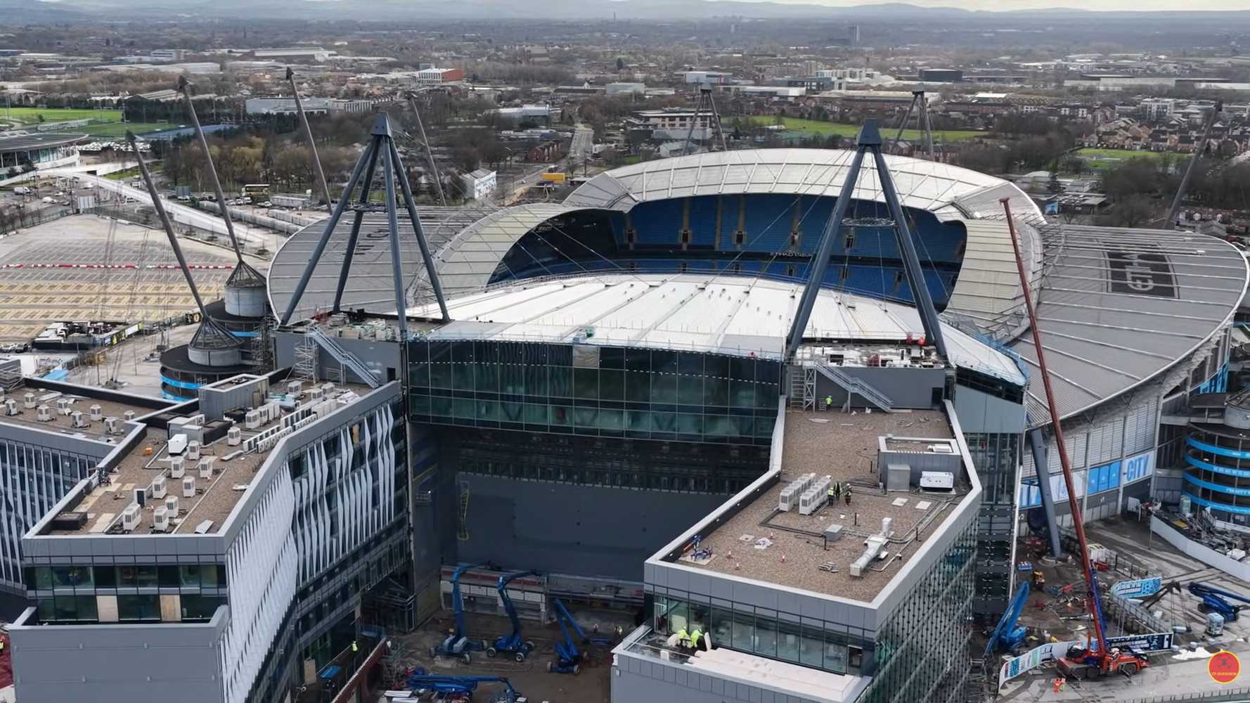9 000 nowych miejsc, strefa kibica na 3 tysiące osób, hotel, skywalk, skybar… Prace, które trwają na North Stand zapewnią arenie Citizens udogodnienia na miarę Bernabeu czy Tottenham Hotspur Stadium. Widać już wyraźnie najważniejsze efekty: gigantyczną metalową strukturę, na której oprze się nowa konstrukcja.
