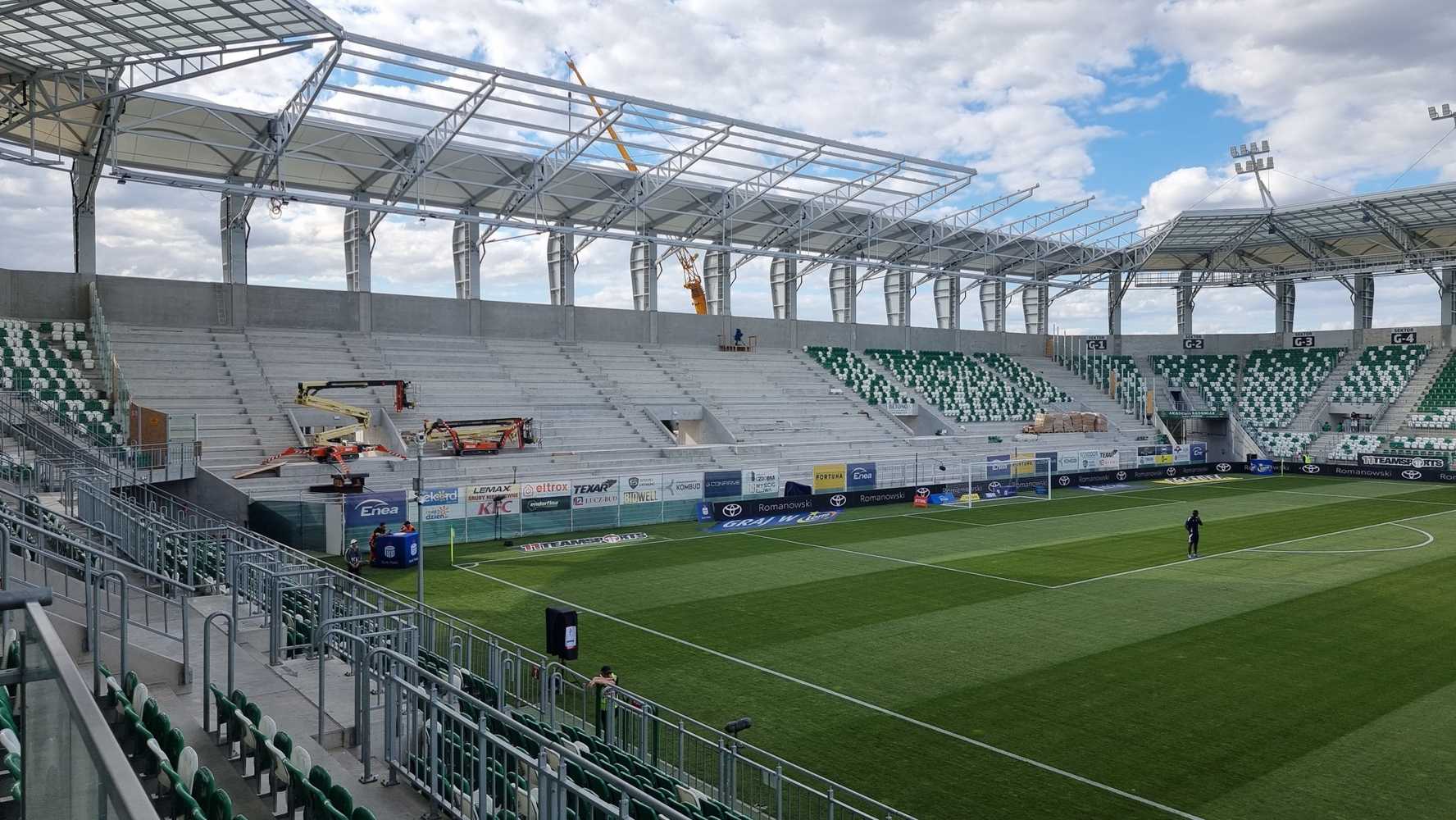 W kwietniu rozstrzygnięto przetarg na budowę dwóch brakujących trybun. Postępowanie wygrała firma Betonox Construction, której oferta wynosiła prawie 39,6 mln zł. Wykonawca ma 21 miesięcy na realizację inwestycji od momentu podpisania kontraktu z inwestorem. Prace już trwają.