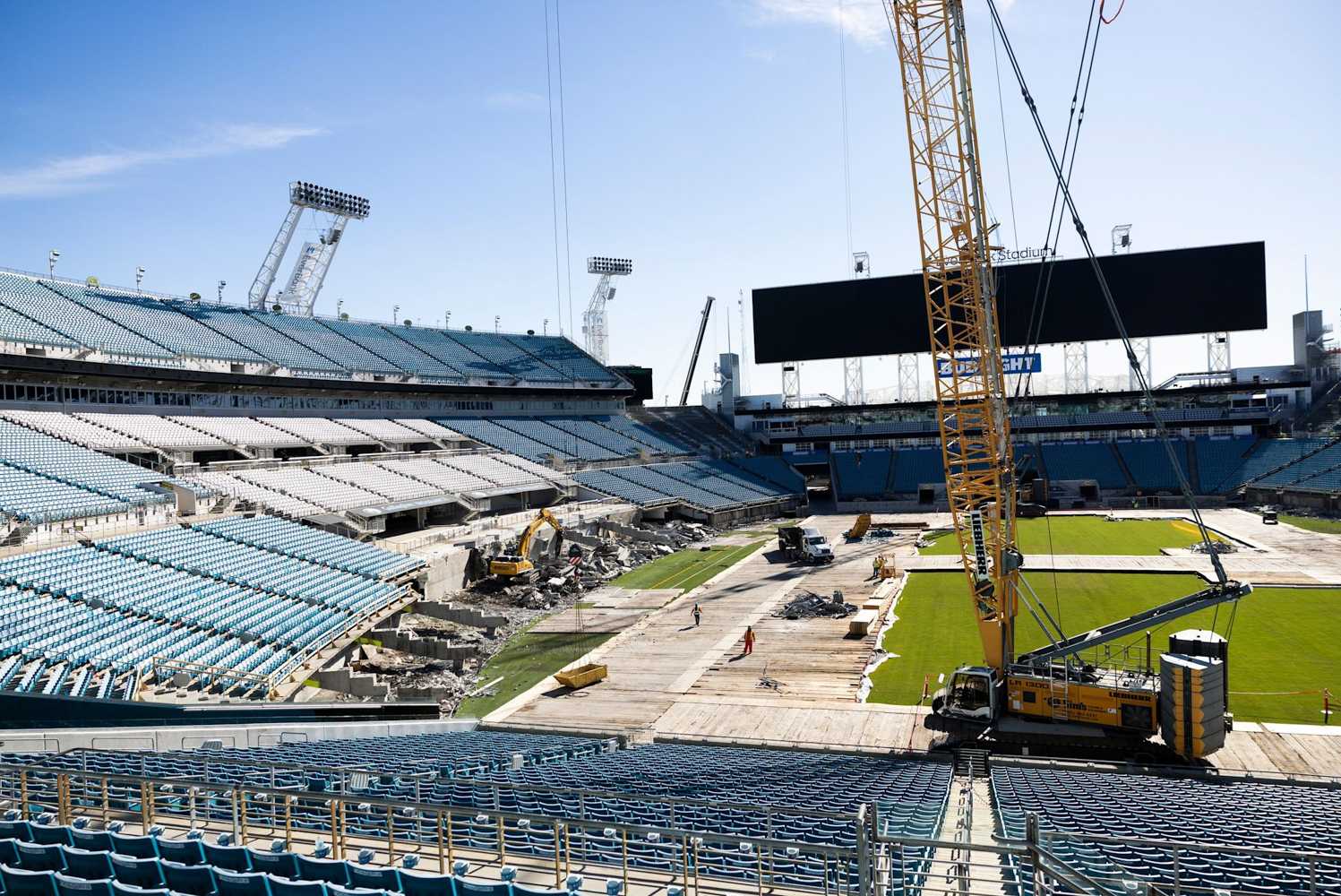 Budowa ruszyła z pełną mocą na początku 2026. W związku z pracami, w 2026 Jaguars będą grać przy ograniczonej pojemności trybun, a w 2027 tymczasowo przeniosą się na inny stadion. Zakończenie inwestycji planowane jest przed startem sezonu 2028.